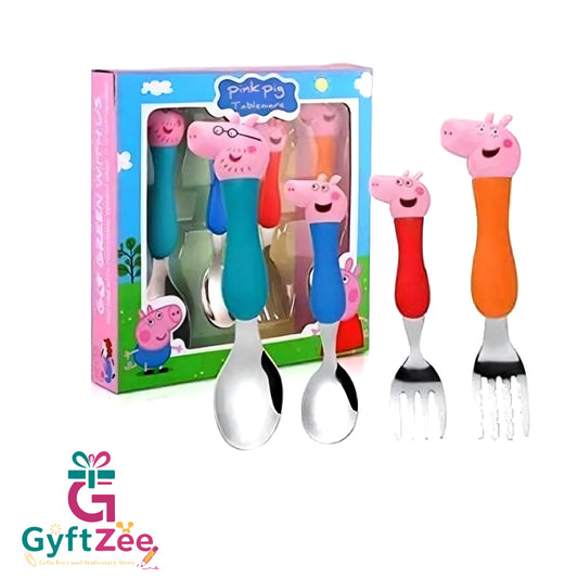 Stainless Steel Peppa Pig Spoon and Fork Set for Kids – 4-Piece Cutlery Set by Fete Propz