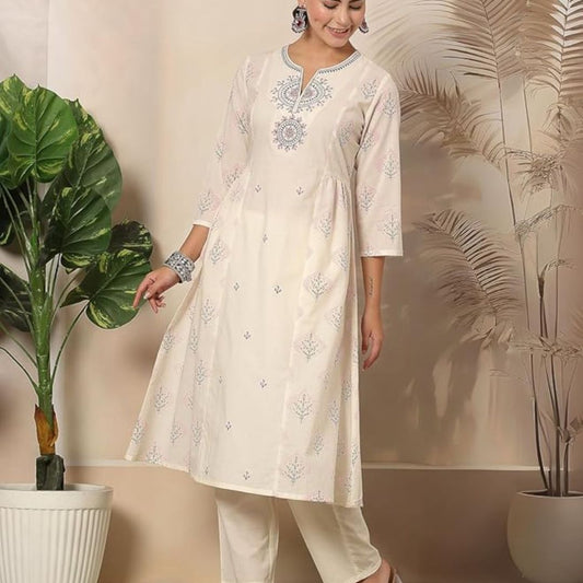 Embroidered Yoke Round Neck Flared Kurta and Palazzo Set for Women