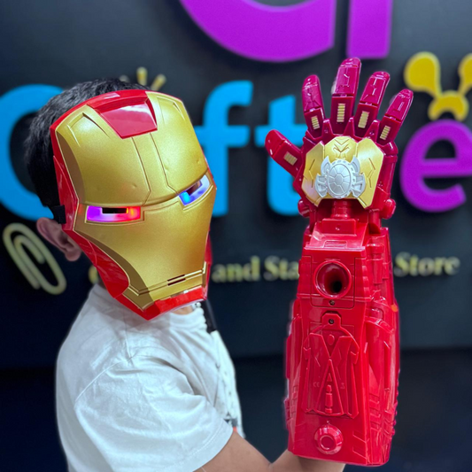 Iron Man LED Light Mask + Electric Arm Repeater Bomb Launcher Toy – Jellyshot Water Bullets