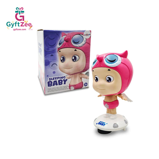Sleeping Baby Musical Toy with Blinking Eyes, Stand & Rotating Dance Feature – Pink, Ages 3+