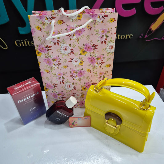 Gift Combo – Fastrack Perfume, Elegant PU Purse & Best Wishes Card | Free Gift