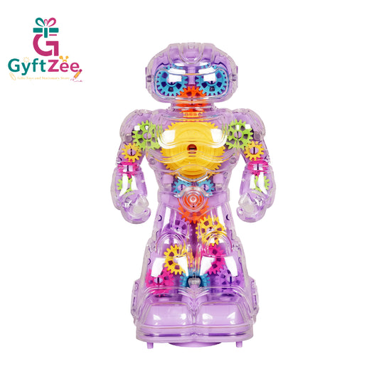 Transparent Musical Gear Robot | Durable Interactive with Lights & Sound