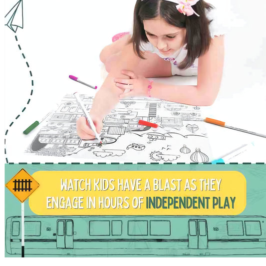 (Random Design) Printed Coloring Mat – 28x30 Inches (Washable & Reusable Kit)