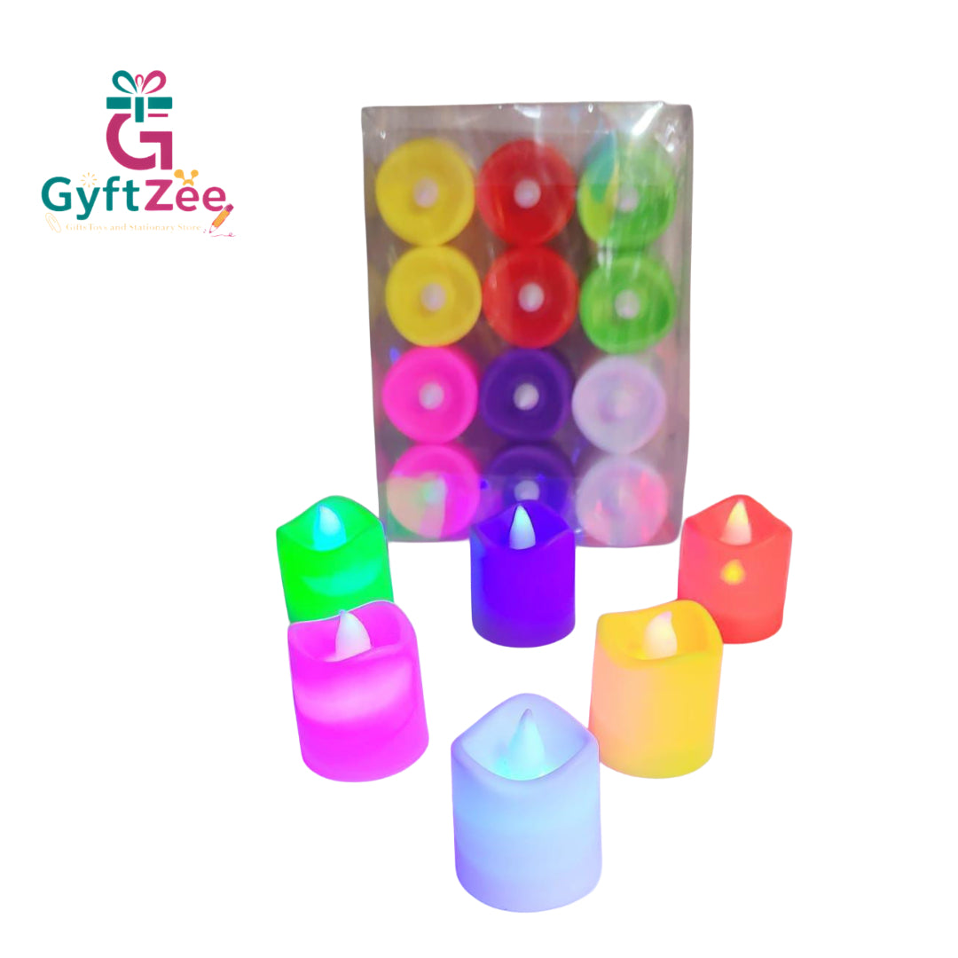 Celebrate this festive season with our vibrant 12 pcs Box of Colorful Small LED Candles! Perfect for decorating your home, office, or any celebration space, these multi-colored LED candles provide a beautiful, smokeless, and safe alternative to traditional candles.