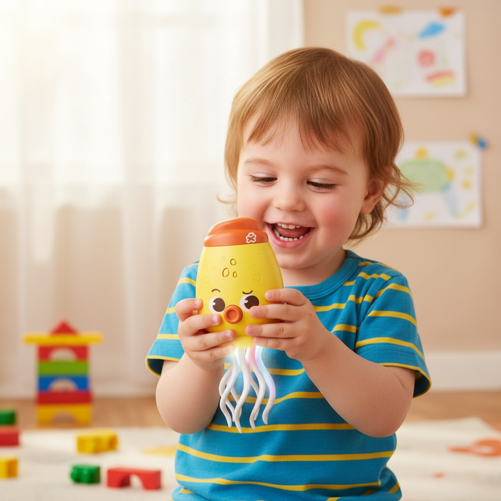 This adorable octopus toy wiggles, spins, and crawls, accompanied by colorful LED lights and adjustable music, effectively encouraging babies to walk and crawl. Ideal for active play and early sensory development, it's a top choice for 6-12 month baby toys, baby walkers, and toys for 1-year-old boys and girls.