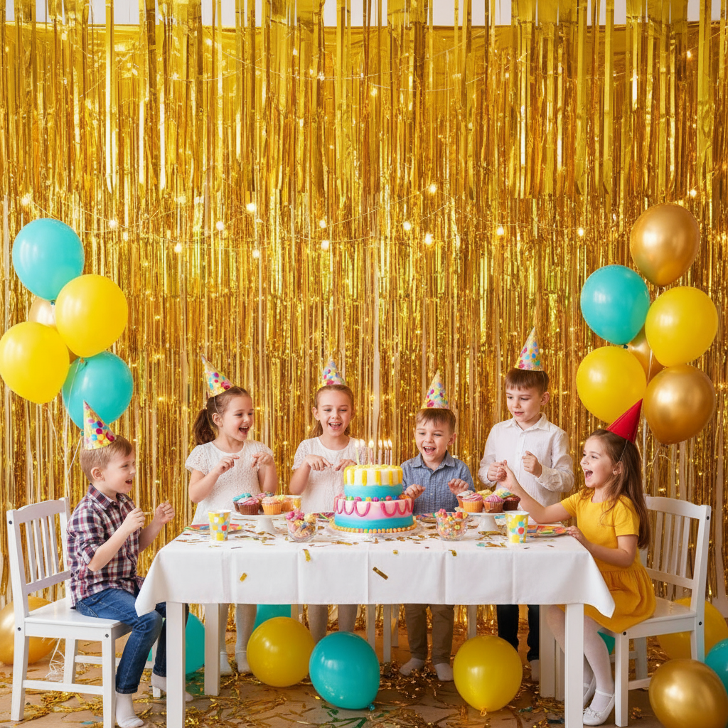 Gold Color Foil Fringe Curtain – 3x6 ft for Birthday & Decoration
