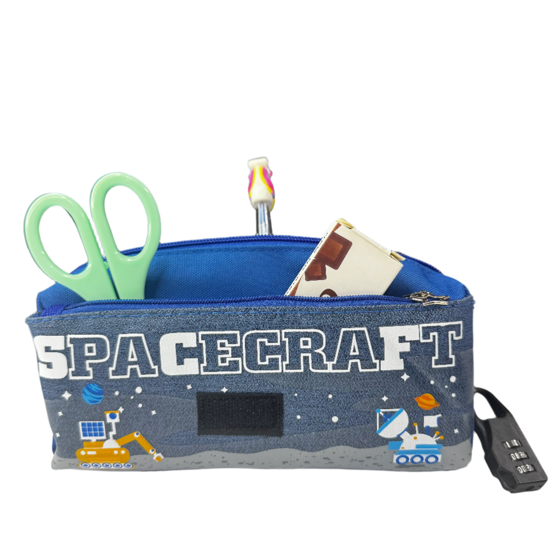 Let your child explore their creativity with this stylish and practical space-themed pencil case!