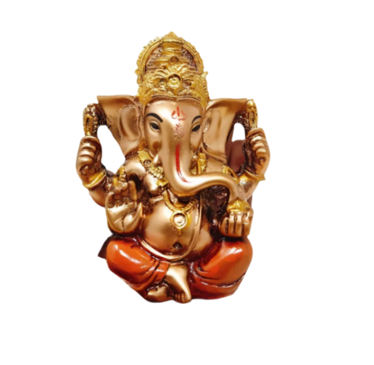 Ganesh Ji Statue with Striking Gold and Brown Finish, 11.5 cm Tall: