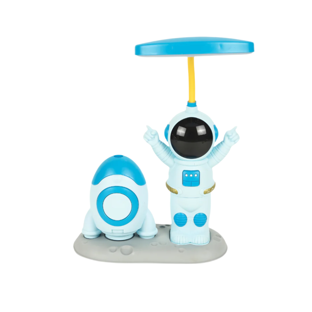 - Whimsical Space Design: Inspired by space adventures, featuring an astronaut lamp, a rocket pencil sharpener, and a holder for pens, pencils, and more.