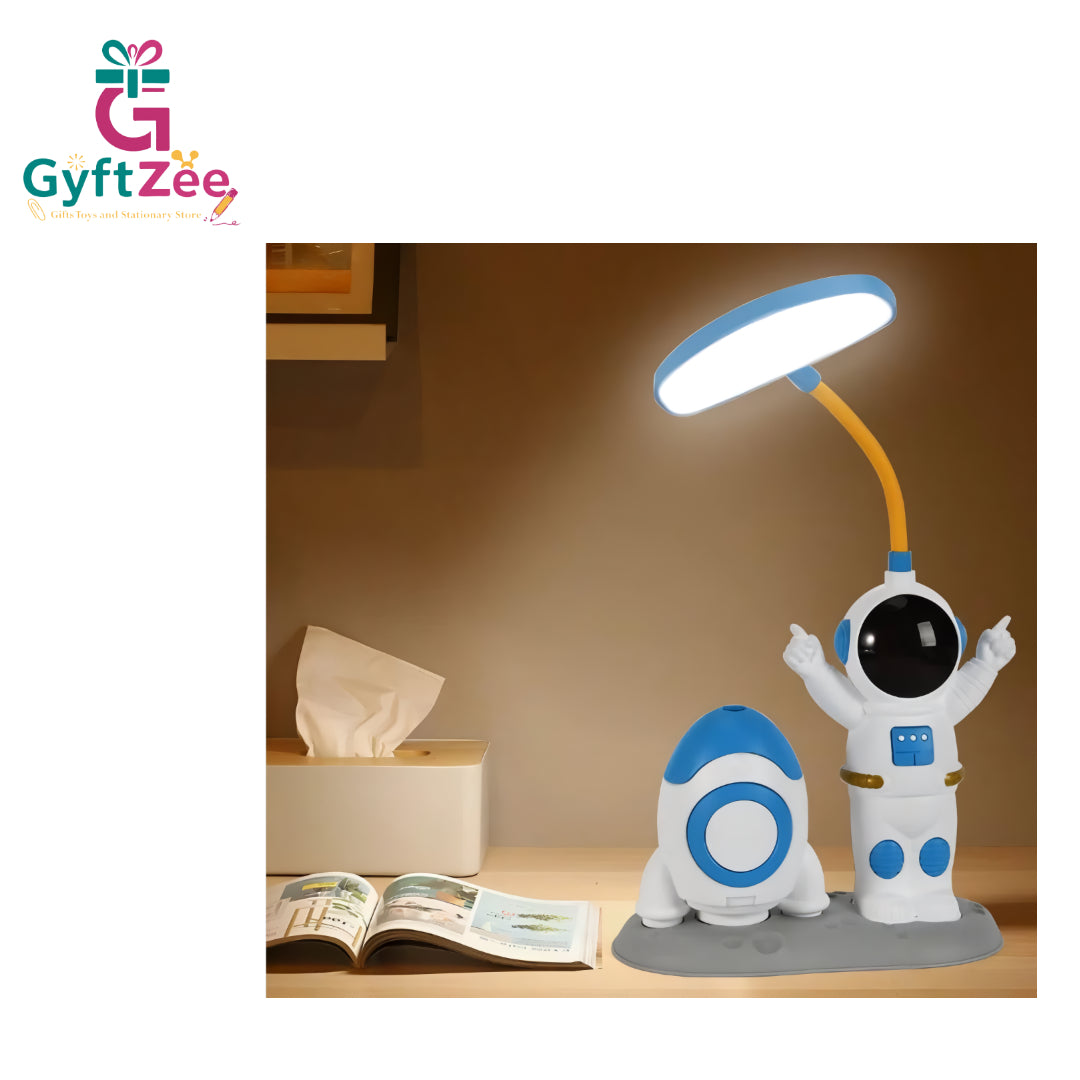 Bring the magic of space exploration to your child’s desk with the Space Theme USB Rechargeable Astronaut Lamp. This unique lamp combines an LED study light, a pen holder, and a space rocket-shaped pencil sharpener, making it a functional and fun addition to any kid’s study area or bedroom.