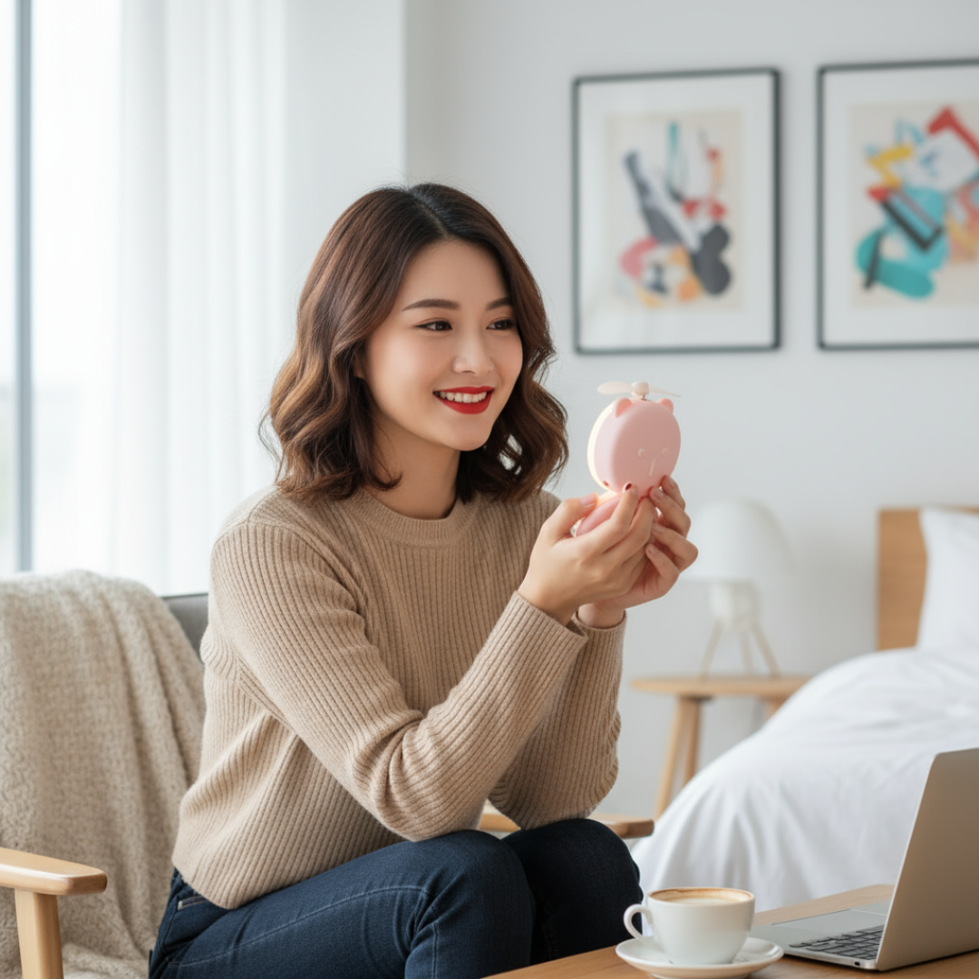 [Random Color] Rechargeable cute mini Fan with Mirror & Light | Foldable Makeup Gadget | Girls [FREE Ship & COD/Partial COD > Rs 499]
