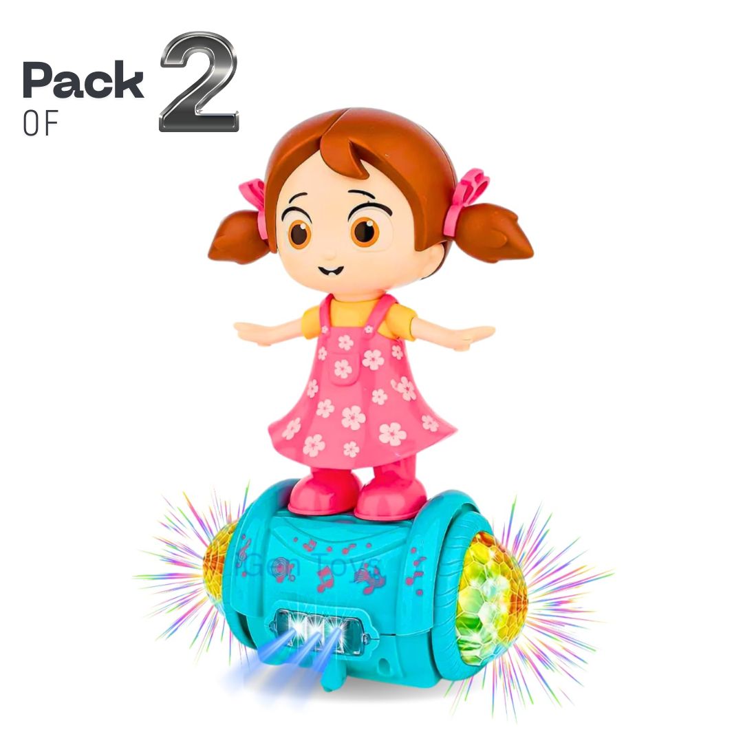 [Pack of 2 - Twins, Random Colors] Fashion Girl & Boy Musical Toy – Rotating Dancing Girl with Lights & Sound